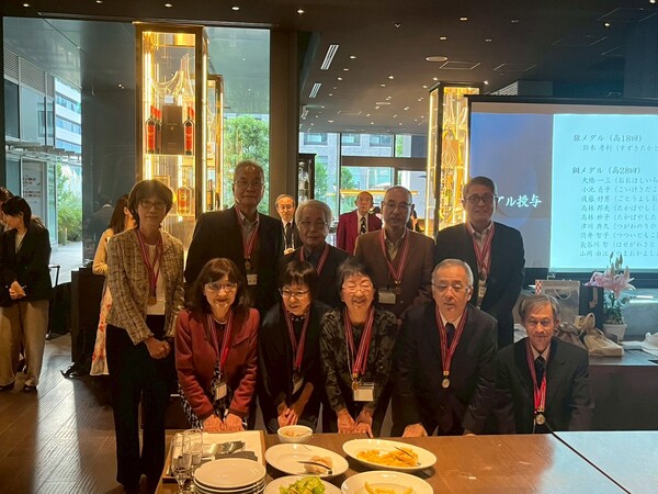 関東支部としては初めて、卒業60年、50年の記念のメダル贈呈がありました。高18回1人、高28回9人に、加藤同窓会長からメダルが授与されました。来年は高9回、高19回、高29回が対象です。お誘い合わせてご参加ください。
