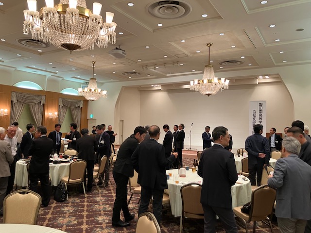 また、お食事時間には自己負担でのビールなどを楽しみながら、卒業回、仕事の関係を超えて多くの方が交流されていました。自分の席から離れ、あちらこちらに2~3人で賑やかに立ち話をしているグループが多くみられました。同窓生ばかりという温かな雰囲気の中で、さらに自由に交流できる場、時間の持つ意味の大きさを改めて感じることができました。同窓会っていいですね。